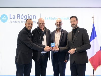 Le lundi 8 décembre à l'Hôtel de Région de Lyon, Fabrice Pannekoucke, Président de la Région Auvergne-Rhône-Alpes, a remis les 200 premiers boutons d'alerte à titre gracieux aux buralistes de la région.